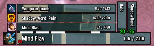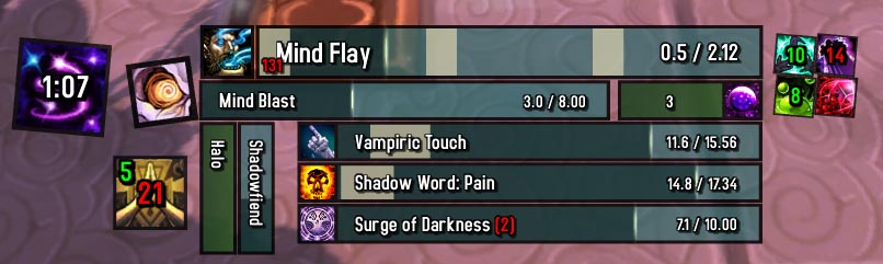 Following shadow priest related example configuration might help you understand Gnosis' timer-bar options and possibilities a little better. For more information about timer bars and the addon in general see the description below. Importing all bars at once will cause lag (just wait, your client has not crashed).