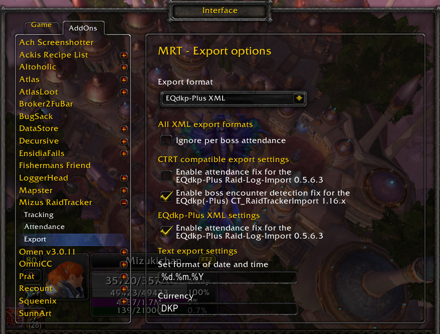 - 'Ignore per boss attendance': If enabled, MRT will ignore the per boss based data when exporting. Each attendee will be exported as if he/she attended all boss events. If you only create one raid entry for each raid in your EQDKP(-Plus) and make corrections to raid members manually, you might want to activate this option.