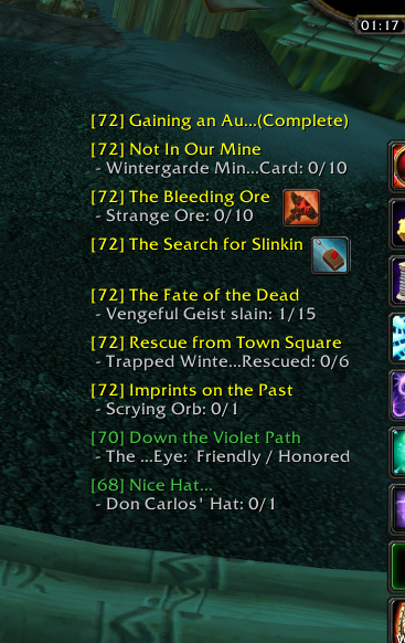 I have been developing my modified quest tracker over the past few years. Each time Blizzard updated it's tracker, I updated mine with it. Coded from the ground up again for patch 3.3 and adapted to 4.0.1, I'm releasing it here so others may benefit.