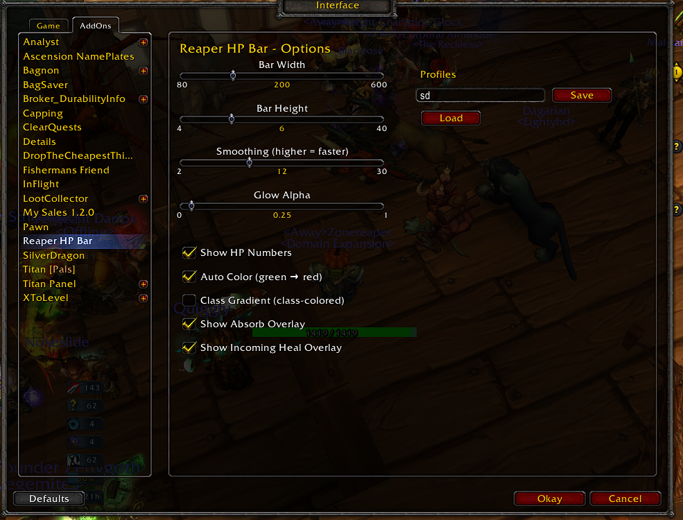 ReaperHP is a lightweight, fully-customizable player health bar Fully dragable that attaches directly above your player nameplate.