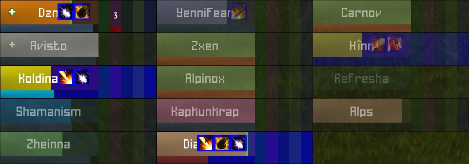 - Click a spell bar to cast that spell on that player, and watch the bar channel down as the HoT runs out