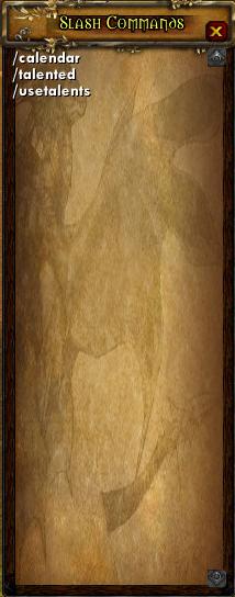Prints out all the usable slash commands, sorted alphabetically, in a window. Slash commands are /slashlist, /cmdlist, /cmds.
