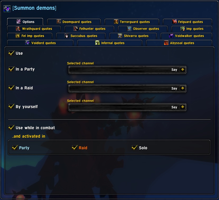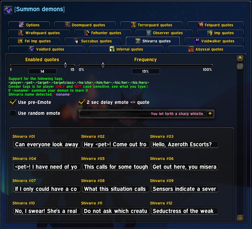 ..fixed or random pre-emote & quote when summoning the warlock demon pets.