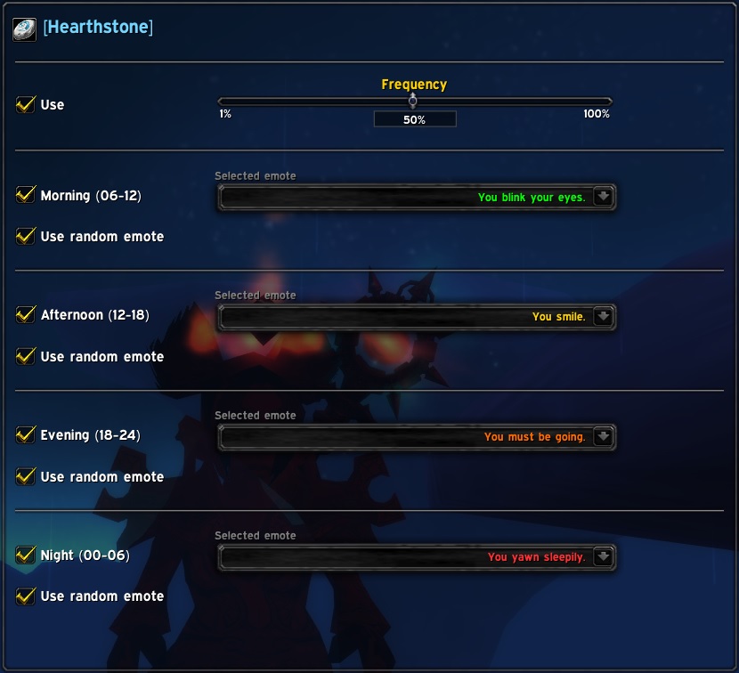 Does a fixed or random emote when using the infamous Hearthstone:P