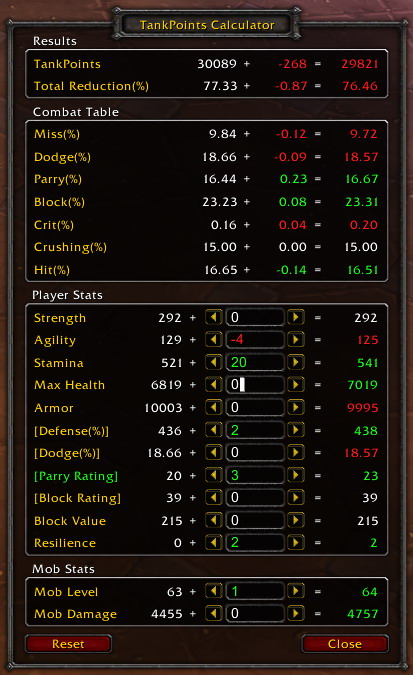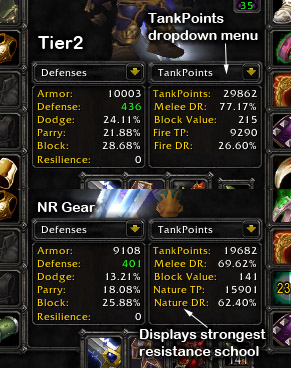 Keep in mind though, that higher TankPoints does not make a better tank, it is only a benchmark for survivalbility gear but does not calculate threat. It can not decide for you what you should wear for what boss, but it can provide you with a wealth of information what will hopfully be useful for choosing gear.